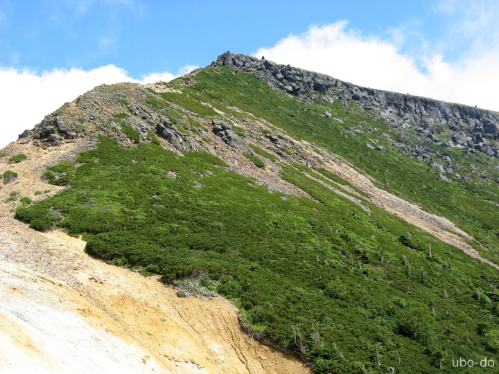 しばらく待つと大ダルミから硫黄岳の稜線が青空に浮かび上がった。