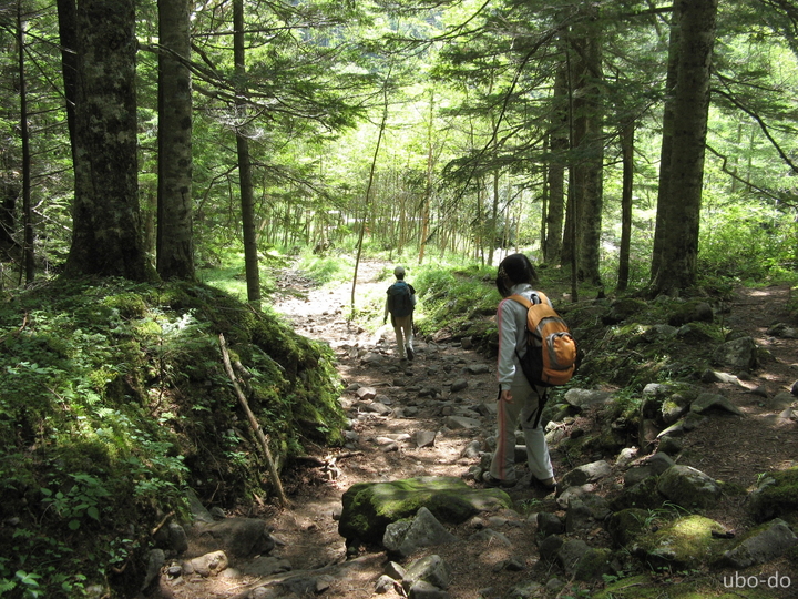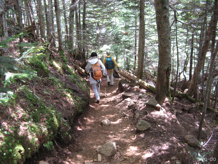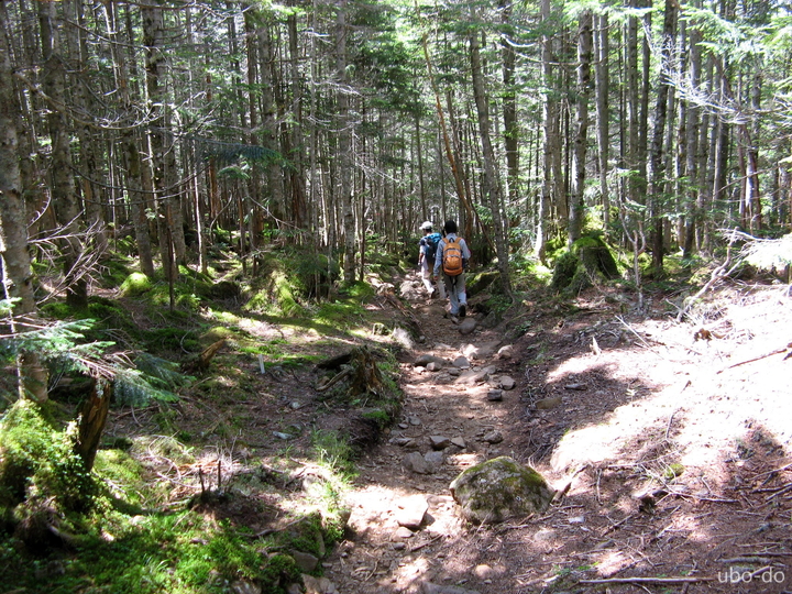 時間が押してきたので、ジグザクに続くシラビソの樹林帯をどんどん下った。