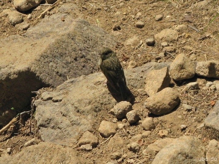 途中の山道に野鳥が現れた。見たことのない斑点模様だったが、どうもルリビタキの幼鳥と思われる。
