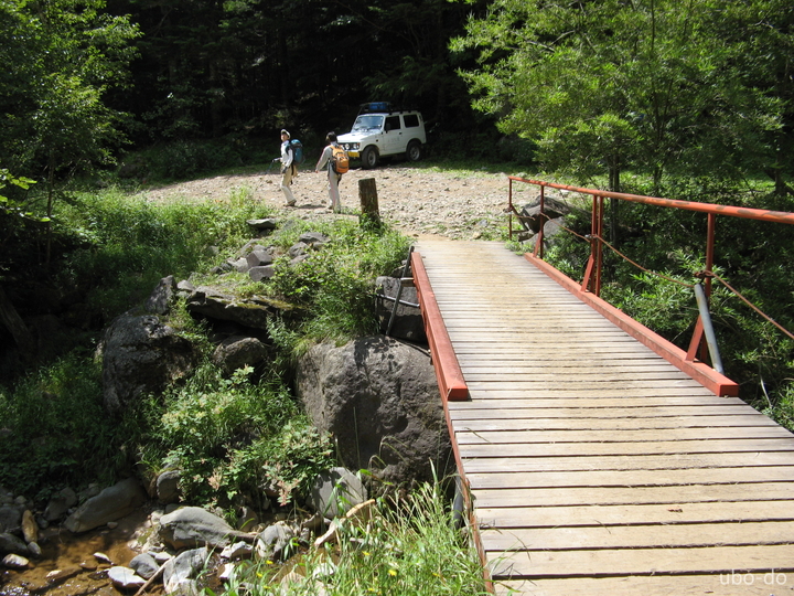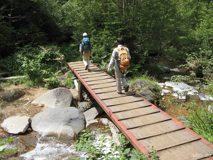 丸木橋を何度も渡り、北沢沿いを歩いて行く。
