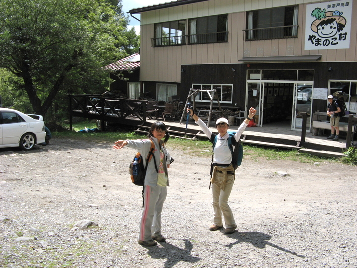 美濃戸山荘からやまのこ村駐車場は5分ほど。さすがに疲れました。