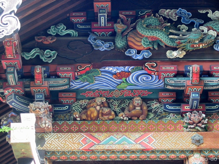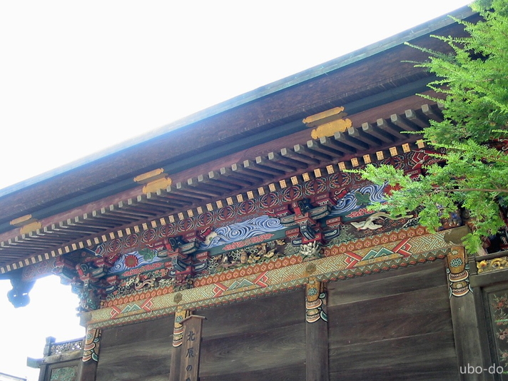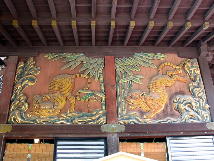 徳川家康は、寅の年、寅の日、寅の刻生まれ。そのため拝殿正面南側に4面の虎が彫刻されている。