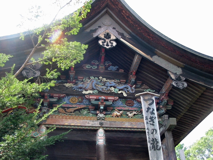 本殿東側には、左甚五郎の作と云われる「つなぎの龍」。この青龍は、北東(表鬼門)を守護している。