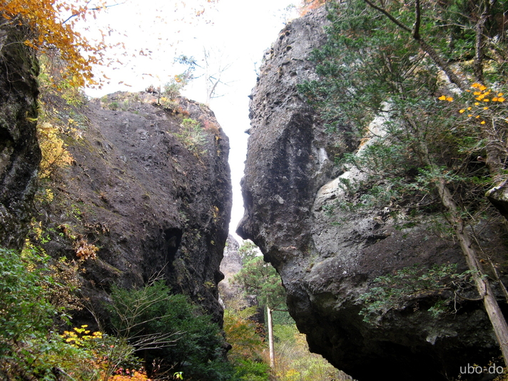 階段を上ると「双龍門」が見える。切り立った「鉾岩」 (別名:ヌボコ岩) と一体化した景観に目を奪われた。