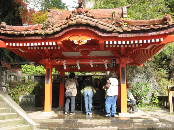 神橋の先にある一年中涸れることがない「萬年泉」。