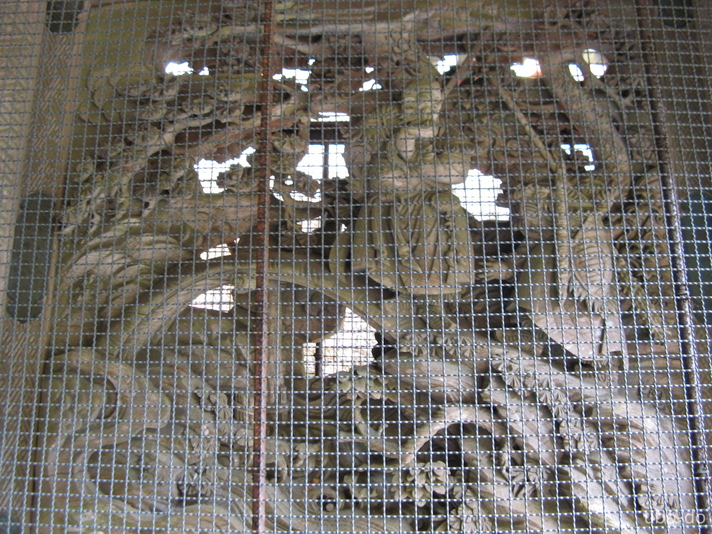 羽目板の両面には三国志にちなんだ絵柄が彫られている。金網で遮られているのは残念だが、見事なものだった。
