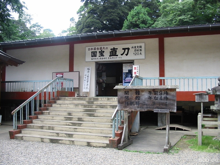帰る時に寄った宝物館。国宝の「直刀」は、柄・鞘を含めて全長271cm、刃長223.5cm。奈良末期から平安初期の制作。現存する伝世品では最古のひとつとのこと。(※ 宝物館は平成30年より休館中)
