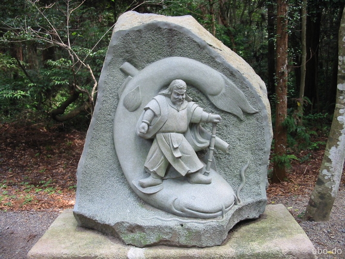 奥宮の先は左右に分かれており、の右手へ進むと祭神が大鯰を抑えている石碑があった。