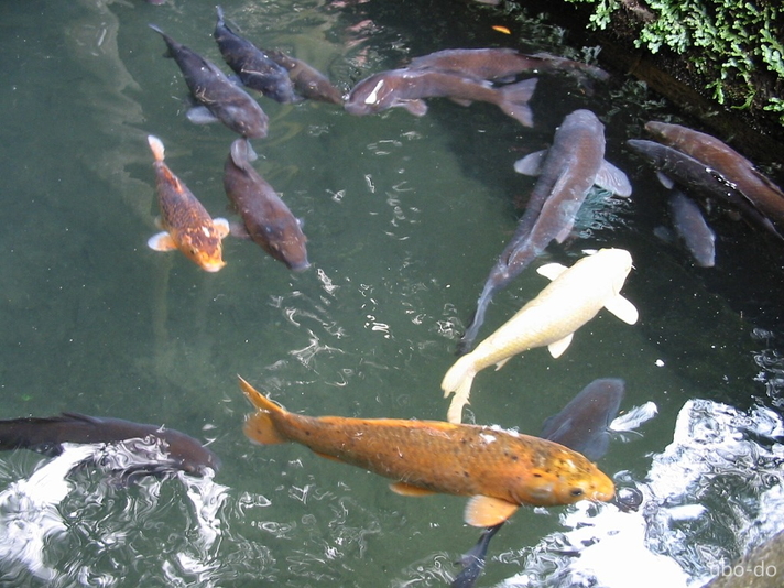 池には鯉がたくさん泳いでいた。