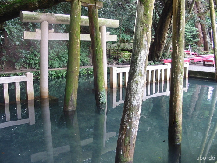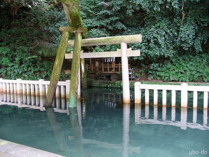御手洗池は古くからみそぎの場で、大人が入っても子供が入っても水面が胸の高さを超えないと云われる。
