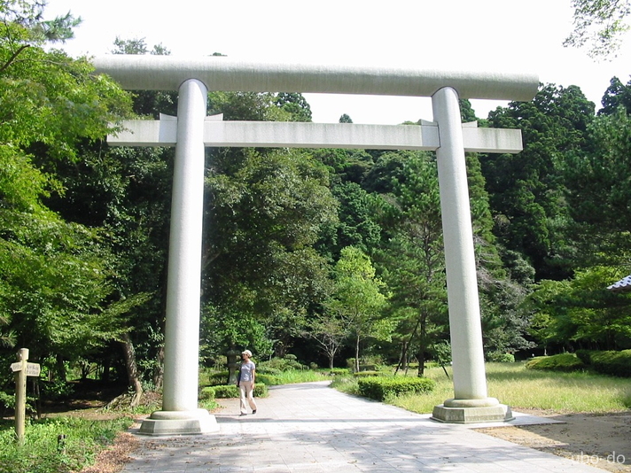 茨城特産・みかげ石製の大鳥居をくぐって参道へ。