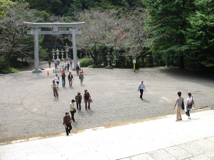 三の鳥居をくぐり、石段の上の総門に向かう。