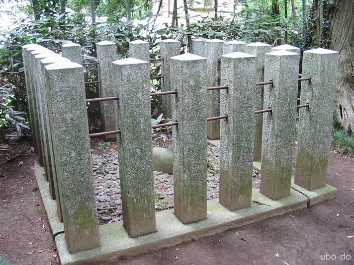 当社の要石は凸形、鹿島神宮の要石は凹形をしており、 地下で繋がっているとも云われる。