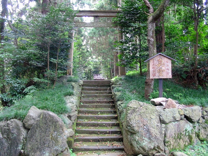 二の鳥居前の駐車場脇から狭い坂道を登ると、経津主神の荒魂を祀る奥宮が鎮座している。