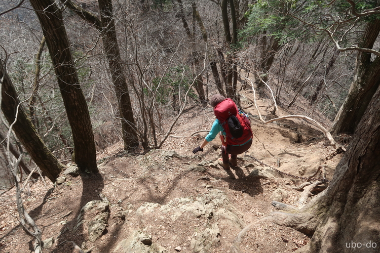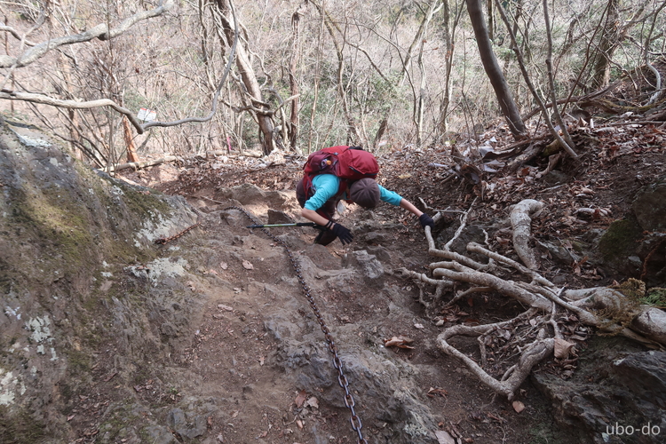 両神神社奥社を過ぎると、急な鎖場がしばらく続く。