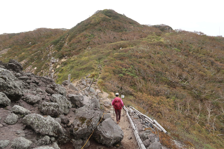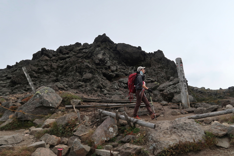 鳥ノ海噴火口の北側を進むと岩木山の山頂が見えてきた。