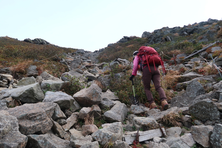 岩ゴロのガレ場を上っていく。