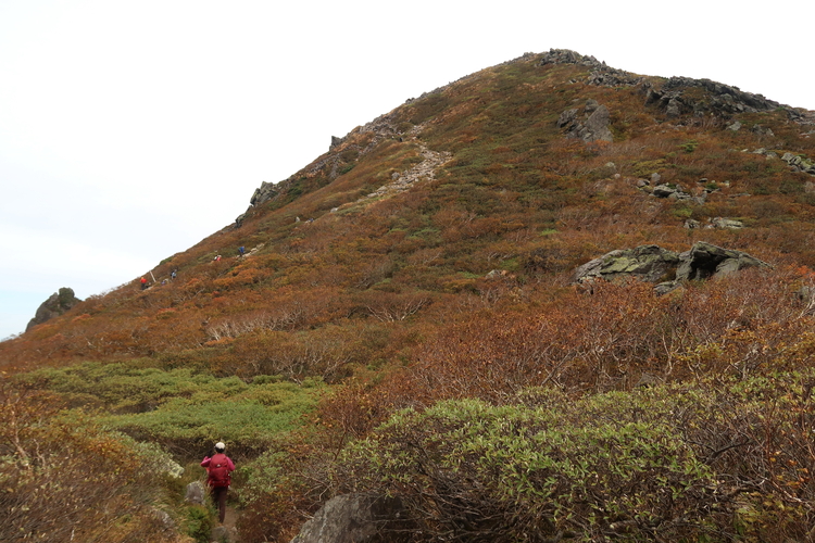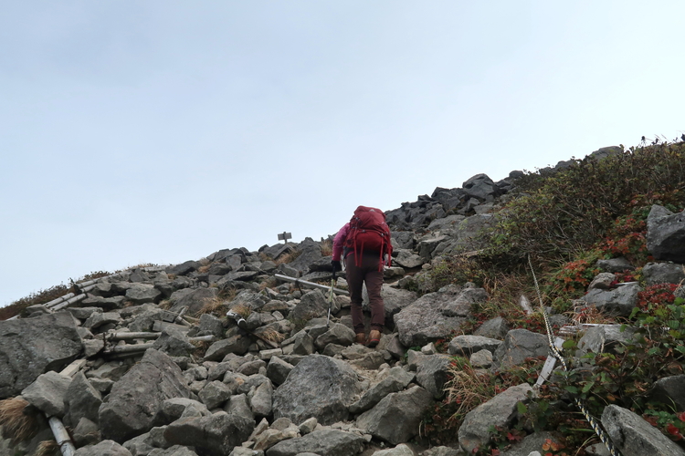 山頂下の急坂を上る。