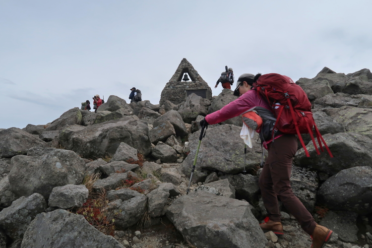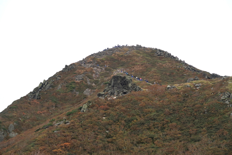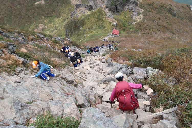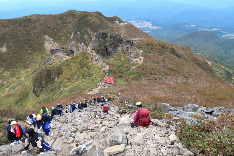 振り返ると山頂付近に学生たちの姿が大勢確認できた。あの人数ではどうしたって騒がしくなるので、登頂時間が重ならなくてよかった。