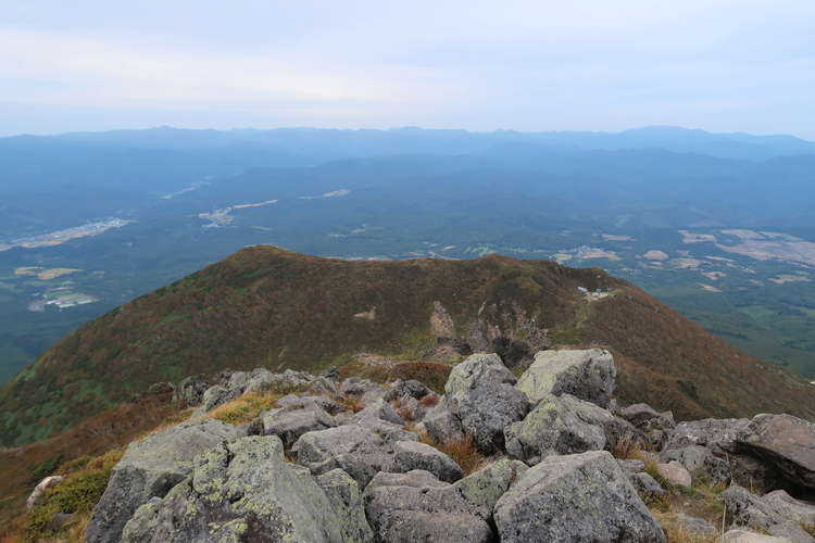 鳥海山が眼下に見える南西方面。右奥に白神岳が見える。