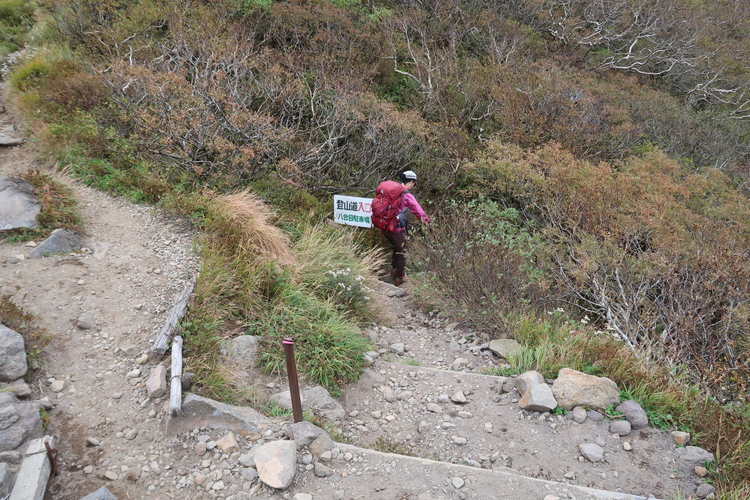 登山道はリフトの手前の石段を上がった先にあった。