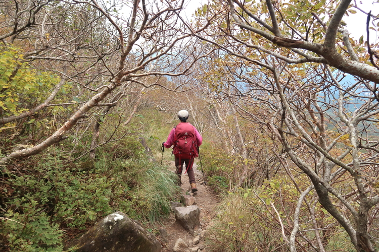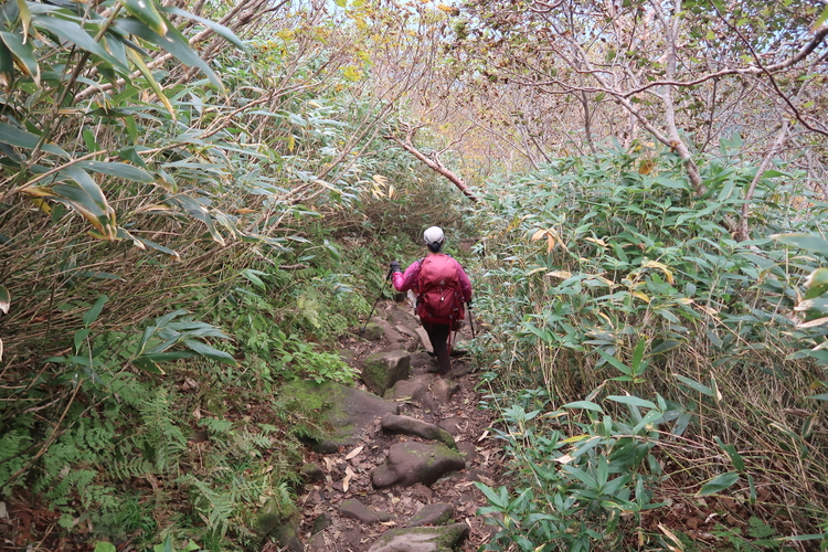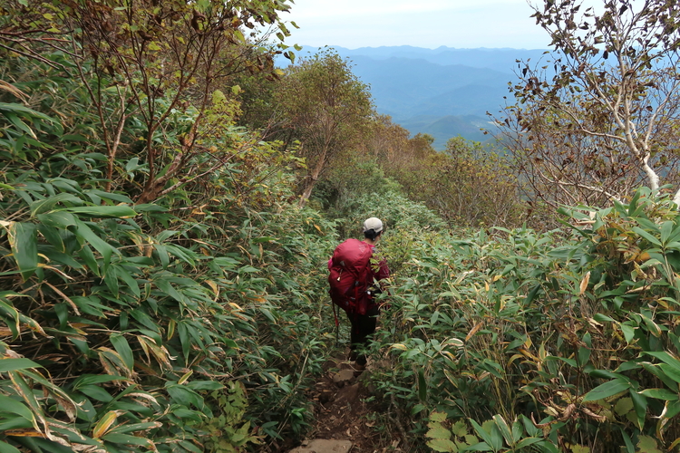 展望を阻む灌木帯を下っていく。