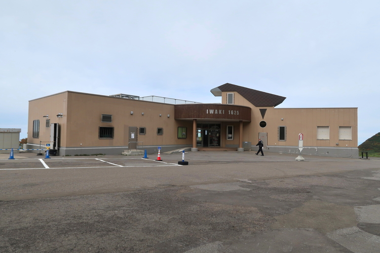 「IWAKI 1625」と書かれた休憩所。建物の中はがらんとして、トイレ以外は特に何もなかった。