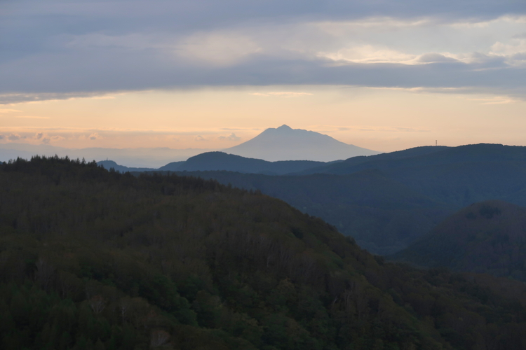 紅葉にはまだ少し早かったが、淡い夕空に岩木山を眺めることができた。