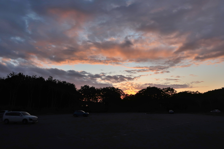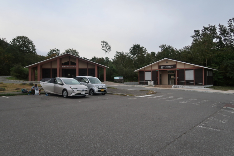 15:55 八甲田山の登山口となる酸ヶ湯公共駐車場に到着。下山してくる登山者がまだちらほらいたが、1時間もすると駐車場は車中泊の10数台のみとなった。