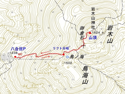8合目駐車場 8:40 ⇒ リフト分岐 9:15 ⇒ 9:55 岩木山 10:40 ⇒ リフト分岐 11:15 ⇒ 8合目駐車場 11:50