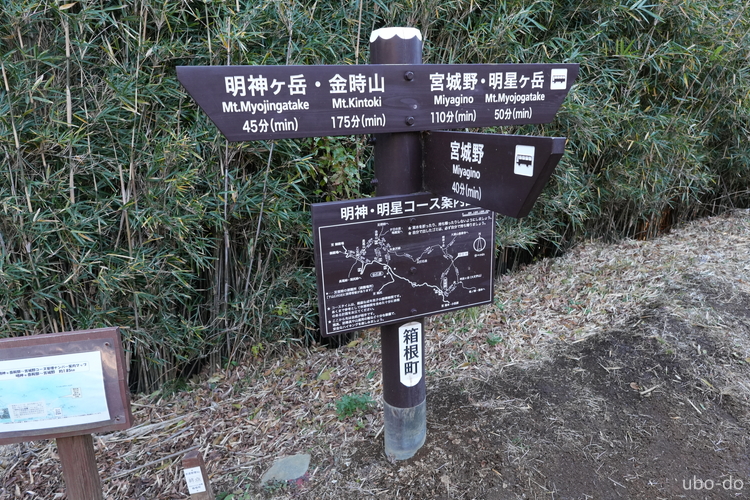 道標にはポイントまでのコースタイムも書かれていた。さすが箱根町。