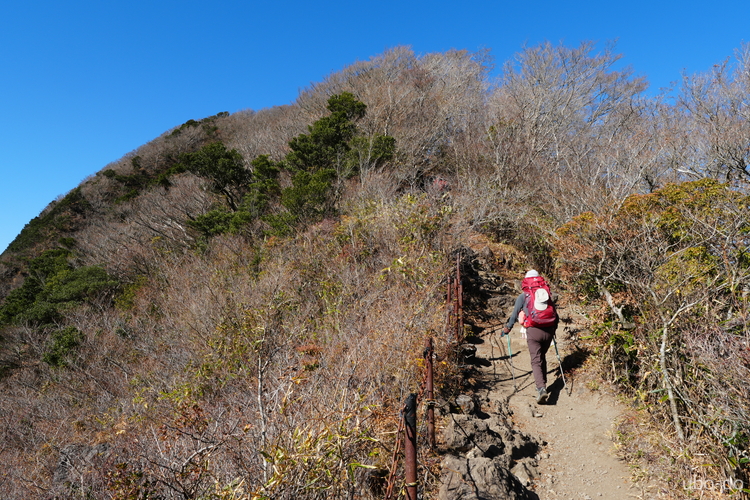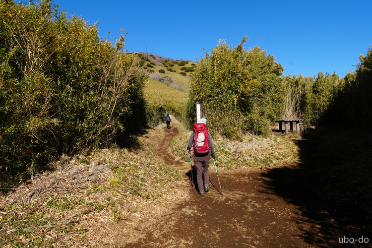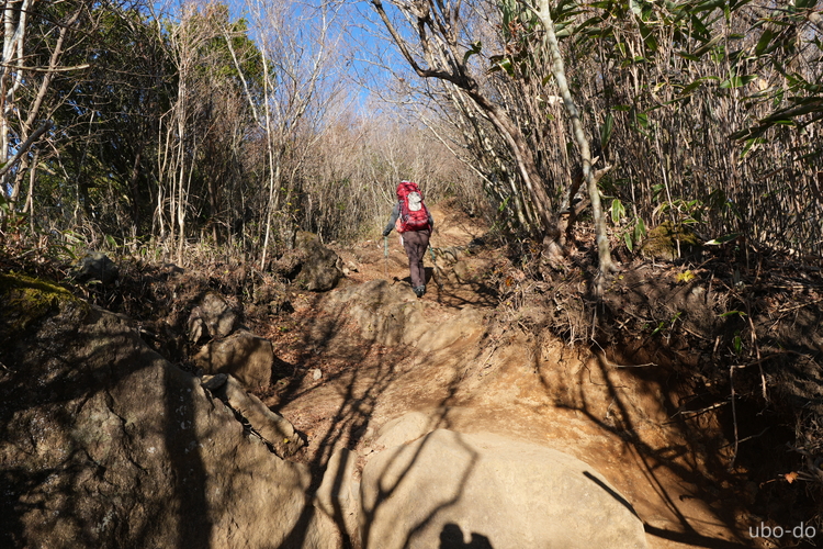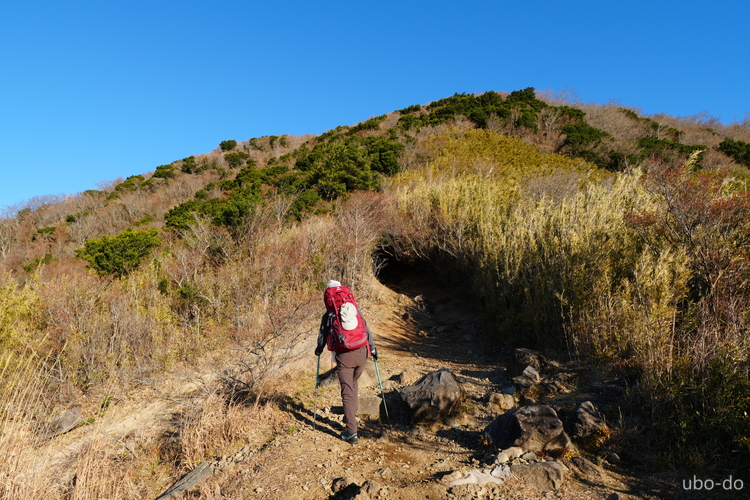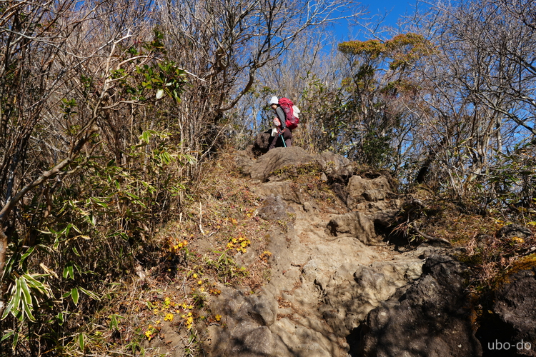 ハコネダケの道を上り返していく。最低鞍部に来たかと思ったが、下りはまだ続いた。