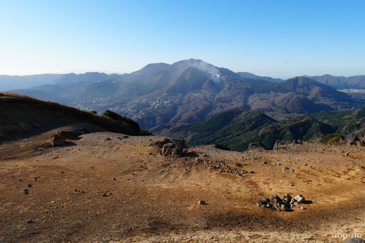 南西方向の神山を中心とした箱根の山々。大涌谷の噴煙がよく見えていた。