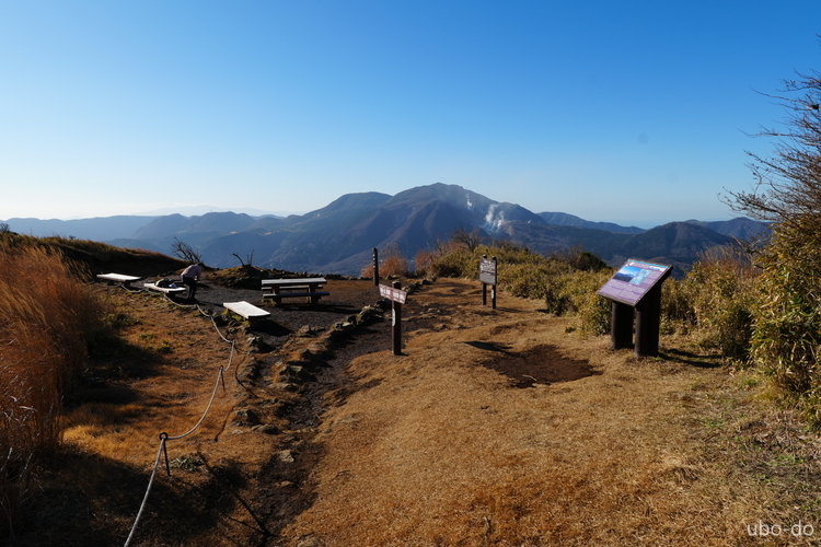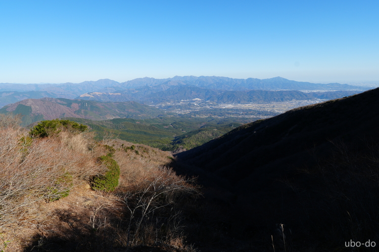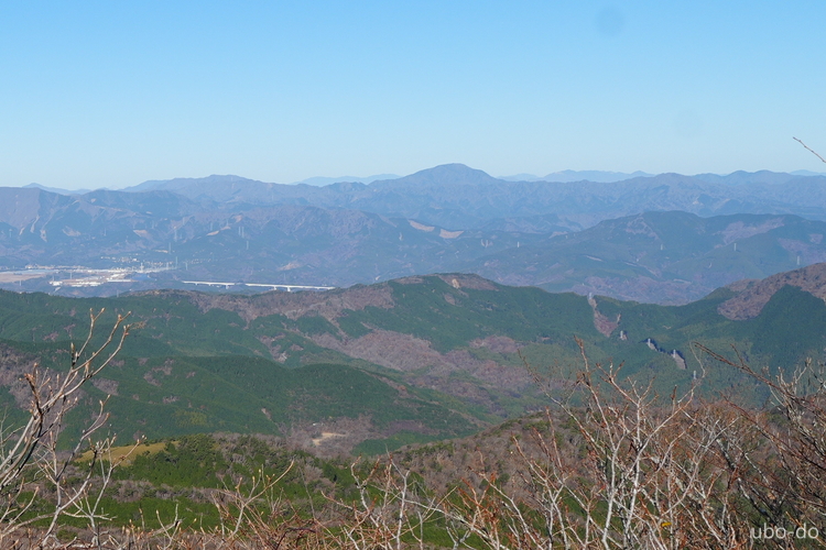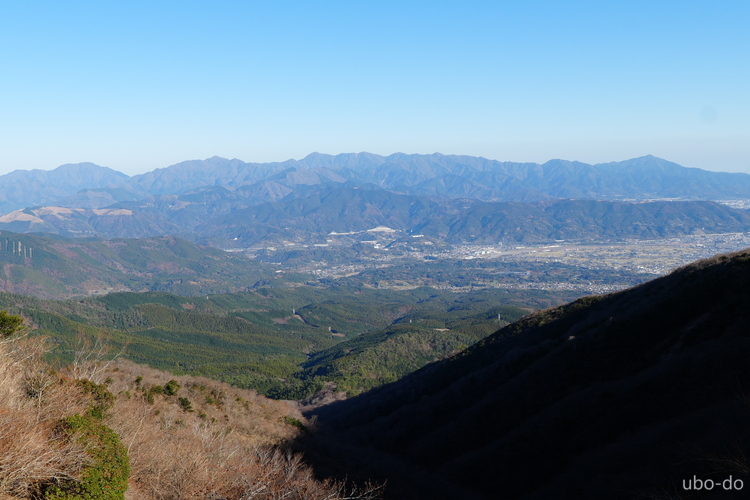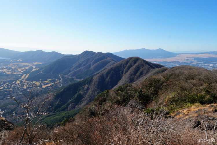 大室山の左には、雲取山 (真ん中左) など奥多摩の山々も見えていた。
