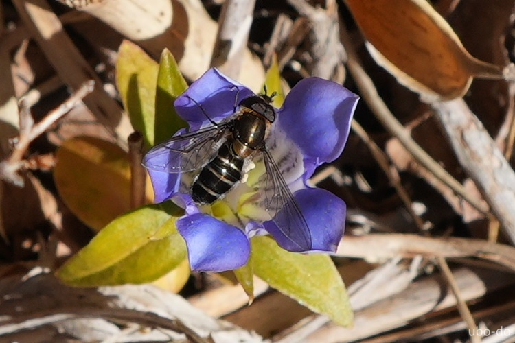 リンドウも咲いていて、クロヒラタアブが蜜を吸っていた。