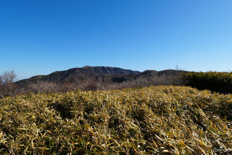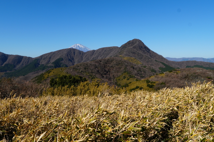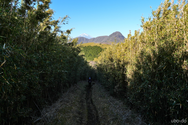 背の高いハコネダケの道から富士山と金時山が見えた。