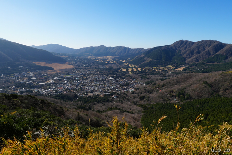 開けた場所から仙石原の街並みとゴルフ場などが見えた。