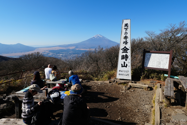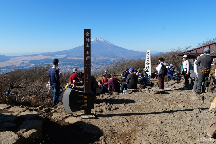 金時山は平日とは思えないほど登山者がいたが、観光地である箱根は都心からのアプローチがよいし、1時間半ほどで登れる山頂からの富士山が何と言っても素晴らしい。登山者が集まるのも当然という気がした。