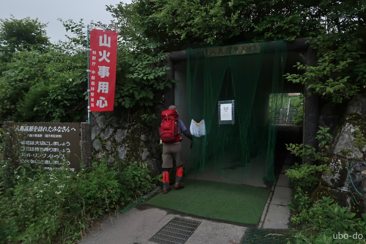 7:55 車山乗越の分岐を通過。車山山頂へ向かう直登ルートは通行止で、ずっと使われていないようだった。