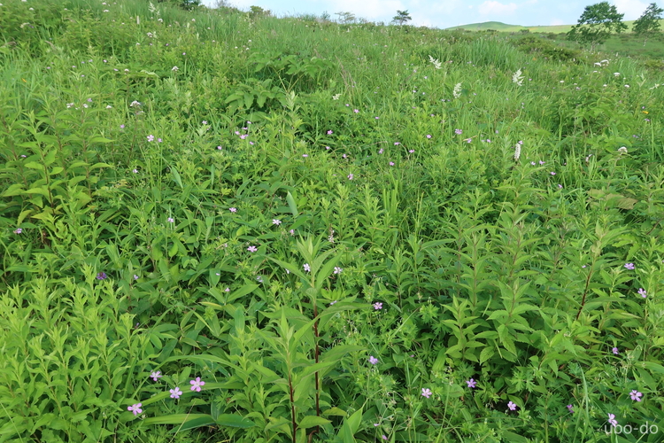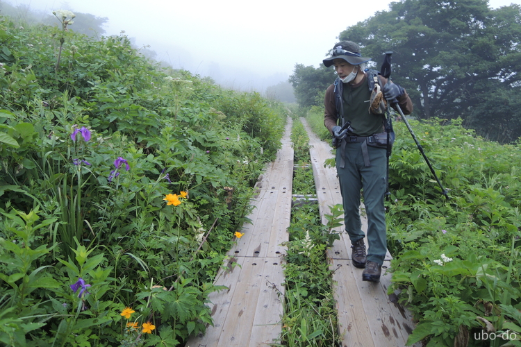 早朝はくもり空で霧も出ていたが、時間とともに青空が広がってくれた。車山からの遠望はきかなかったものの、八島ヶ原湿原から霧ヶ峰の稜線を巡るなだらかな周遊コースは解放感抜群で、様々な花を楽しみながらのんびりとトレッキングを楽しむことができた。八島ヶ原湿原では多くの花を目にしたが、花の名前が掲示してあるものが多くて参考になった。