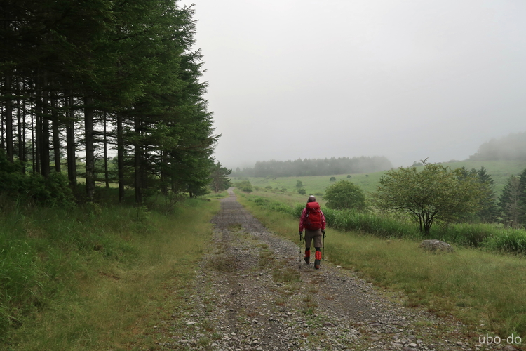 砂利道まで下りてきた。蓼科山はすっかり雲に隠れてしまった。