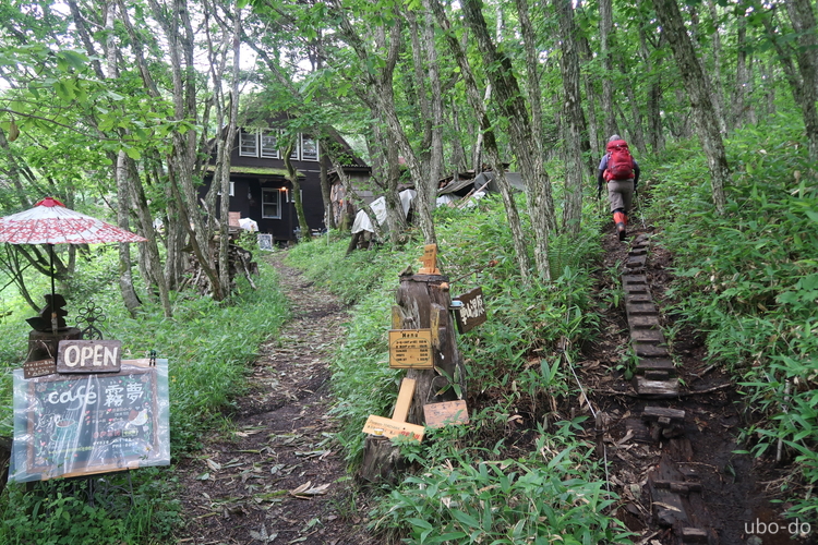 分岐で「蝶々深山・車山湿原」方面へ進んだ。途中「Cafe 霧夢」の横を通過。
