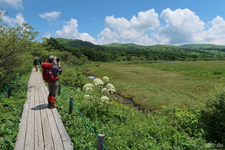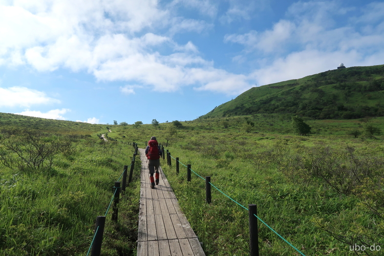 車山へ近づくにつれ、木道を歩く人の姿が見られるようになってきた。