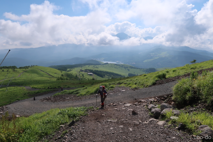 背後の車山が徐々に遠ざかる。