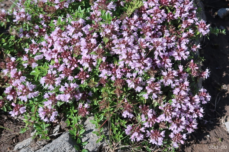 シソ科のイブキジャコウソウ。山頂の岩場にたくさん咲いていた。