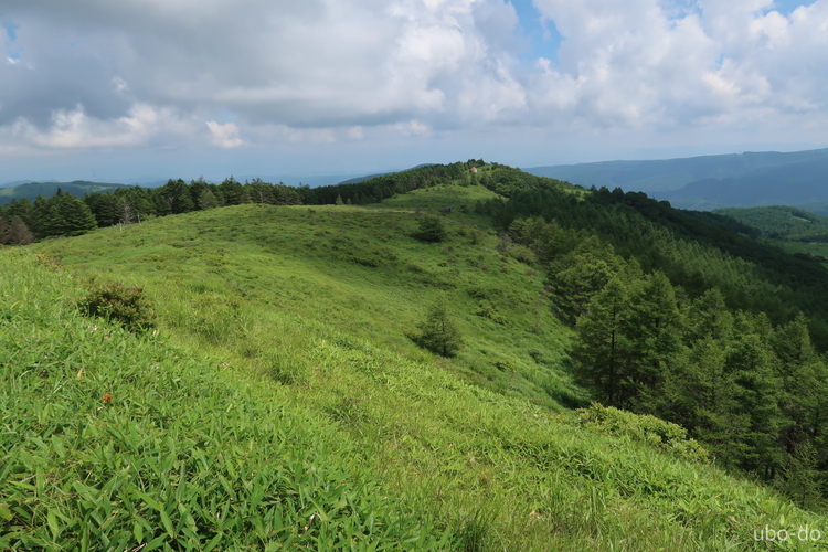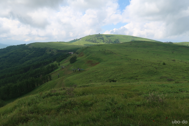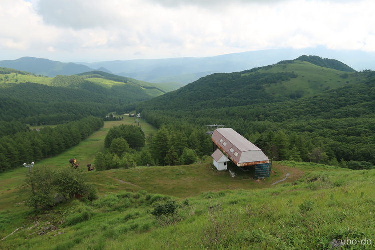 小ピークの眼下にリフトが見えた。車山高原の北東側斜面は、エコーバレースキー場になっている。