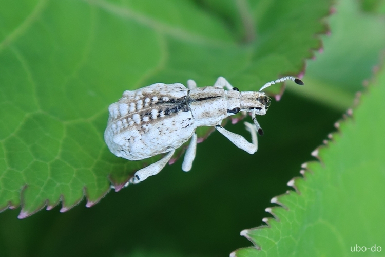 ゾウムシ科のヒメシロコブゾウムシ。ゴツゴツした白い造形に目を惹かれた。