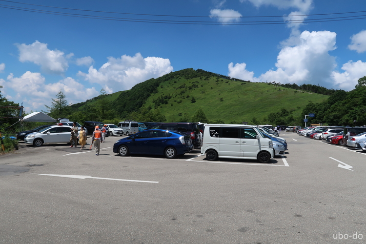 13:00 駐車場に到着。満車で入れない車が列をなしていたので、身支度を整えて早々に帰路に就いた。花と高原歩きを満喫して、大満足のトレッキングとなった。