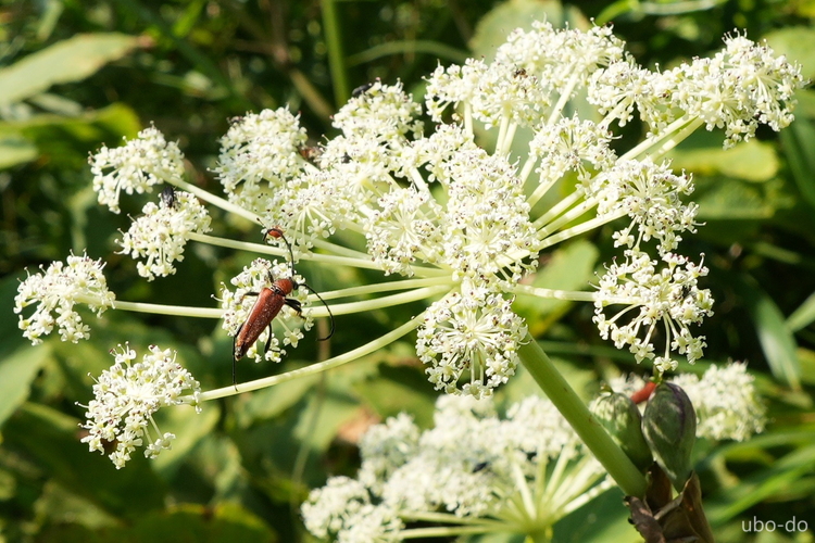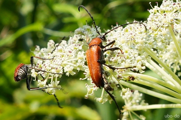 シシウドにアカハナカミキリがいた。パッと虫にピントが合うのでサクサク写真が撮れた。
