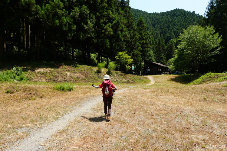 小下沢キャンプ場跡地に出た。ここからは林道歩きとなる。